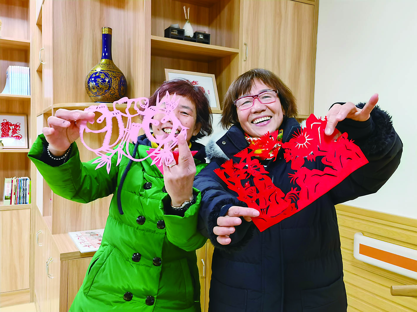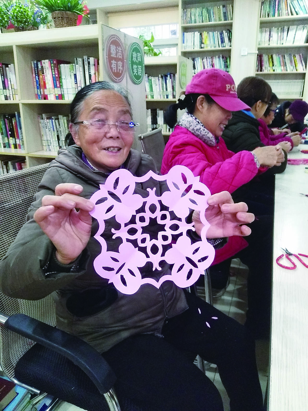1月12日早上8点,芦淞区社会福利中心,杨瑞琴(88岁)敲开了老姐妹王海凤(86岁)的门,“走啦,今天要上课了,不知道这次的剪纸课老师又给我们带来什么惊喜。”两个老姐妹互搀着去上学。