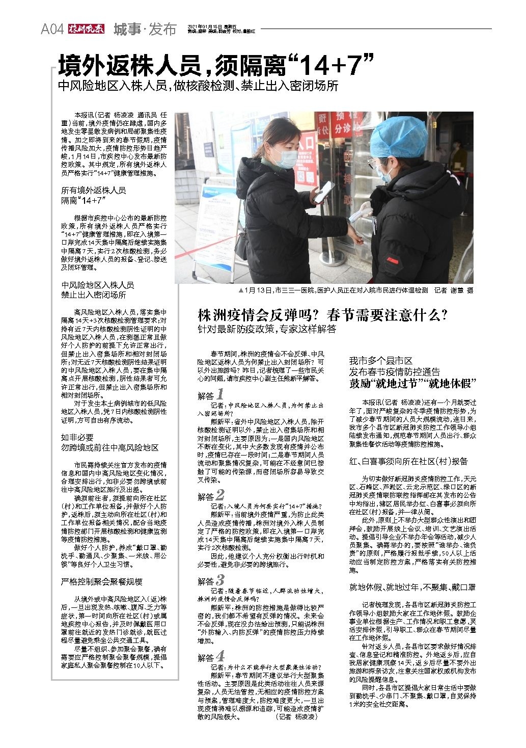 2021年01月15日《株洲晚报》