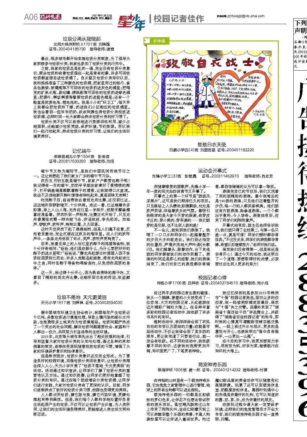 第A06版:校园记者佳作