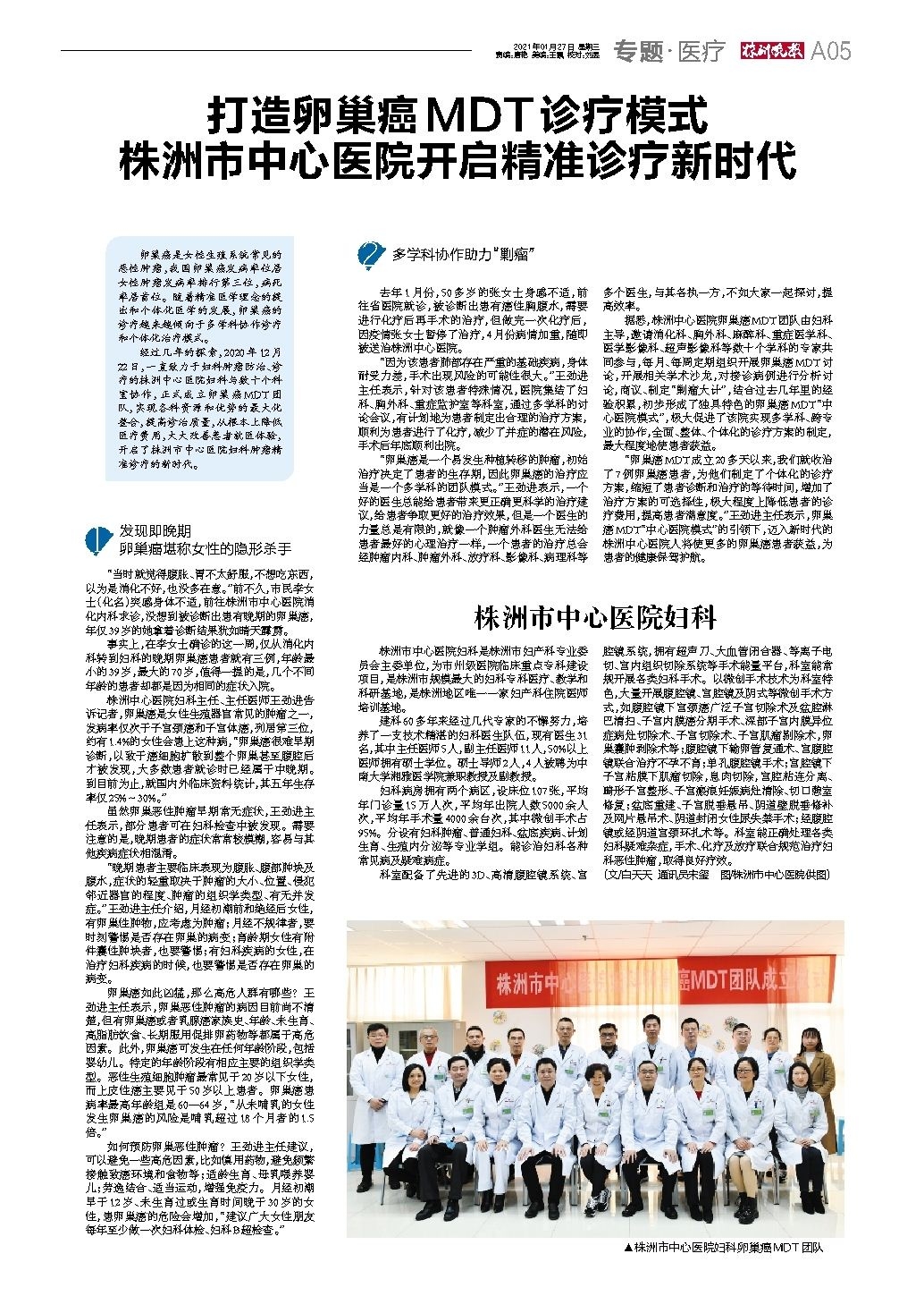 打造卵巢癌MDT诊疗模式 株洲市中心医院开启精准诊疗新时代