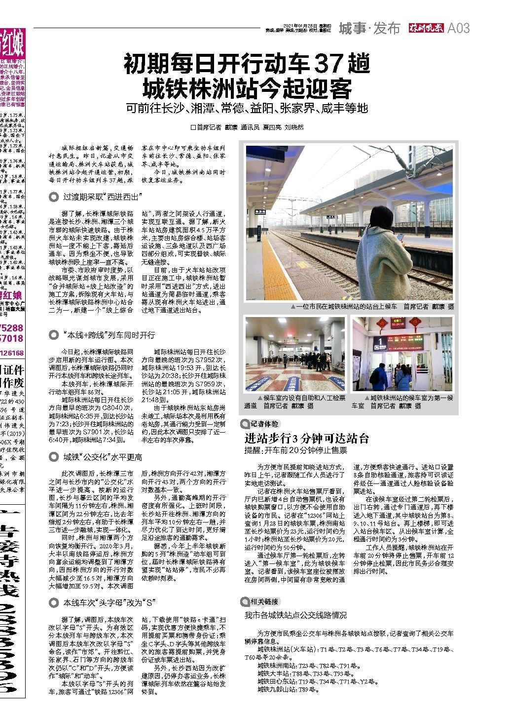 初期每日开行动车37趟 城铁株洲站今起迎客