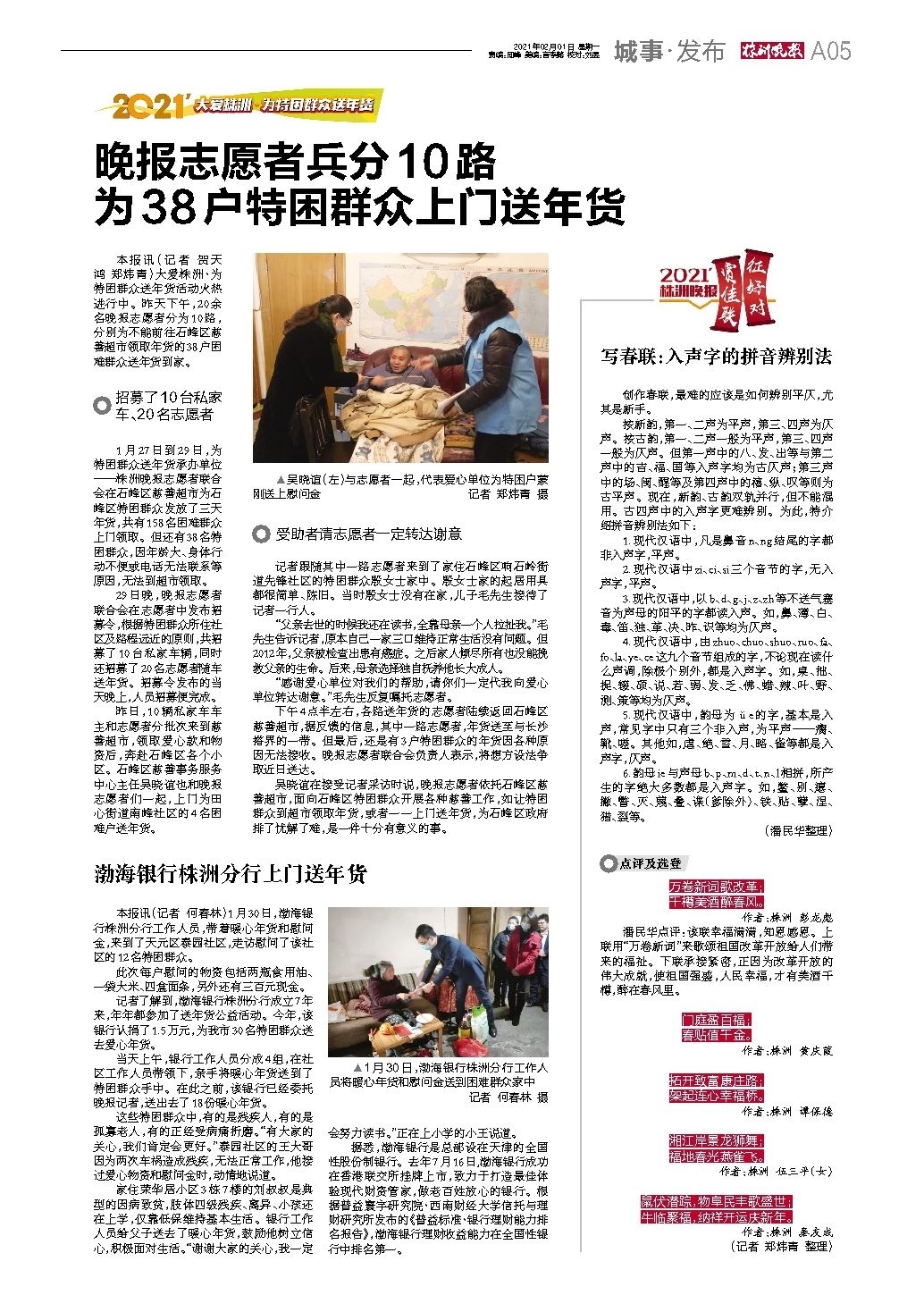 晚报志愿者兵分10路 为38户特困群众上门送年货