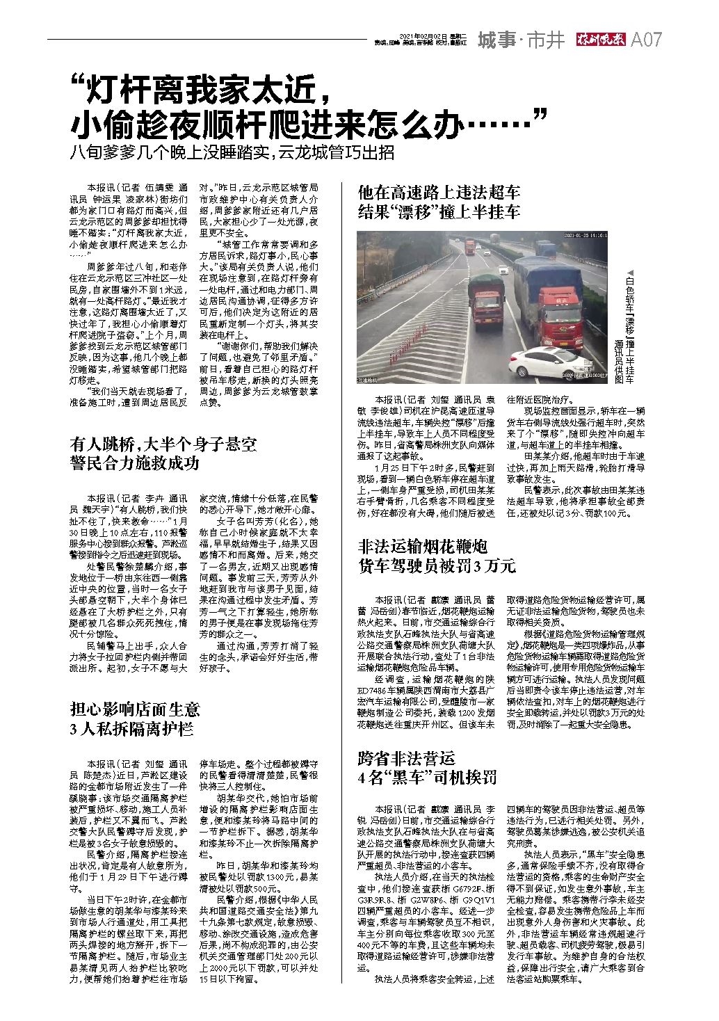 有人跳桥,大半个身子悬空 警民合力施救成功
