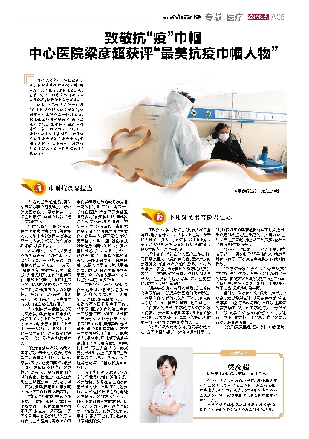 致敬抗“疫”巾帼 中心医院梁彦超获评“最美抗疫巾帼人物”