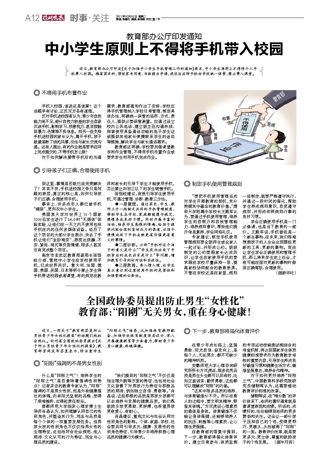 教育部还明确,学校要加强课堂教学和作业管理,不得用手机布置作业或要求学生利用手机完成作业。