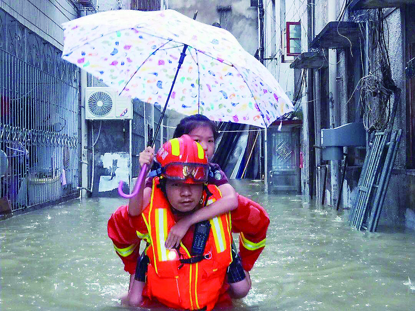 针对婴幼儿、儿童与老人群体,我们就通过呼喊方式确定他们的所在位置,再上楼将他们背到安全区域。期间,一名8岁小女孩和母亲被困在5楼家里,由于她楼下的积水较深,天还在下雨,我就蹚着水把她背到了安全区域。我当时很累了,但小女孩获救后给了我一个“熊抱”,还不停地致谢,我立刻感觉自己没那么累了,继续投入救援工作。