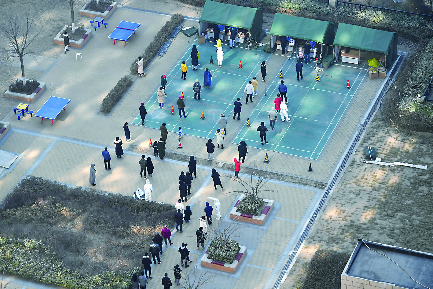 2月4日,北京市大兴区天宫院街道融汇社区居民参加核酸检测取样。 当日,北京市大兴区天宫院街道融汇社区进行新一轮全员核酸检测。融汇社区自1月20日调整为高风险地区。