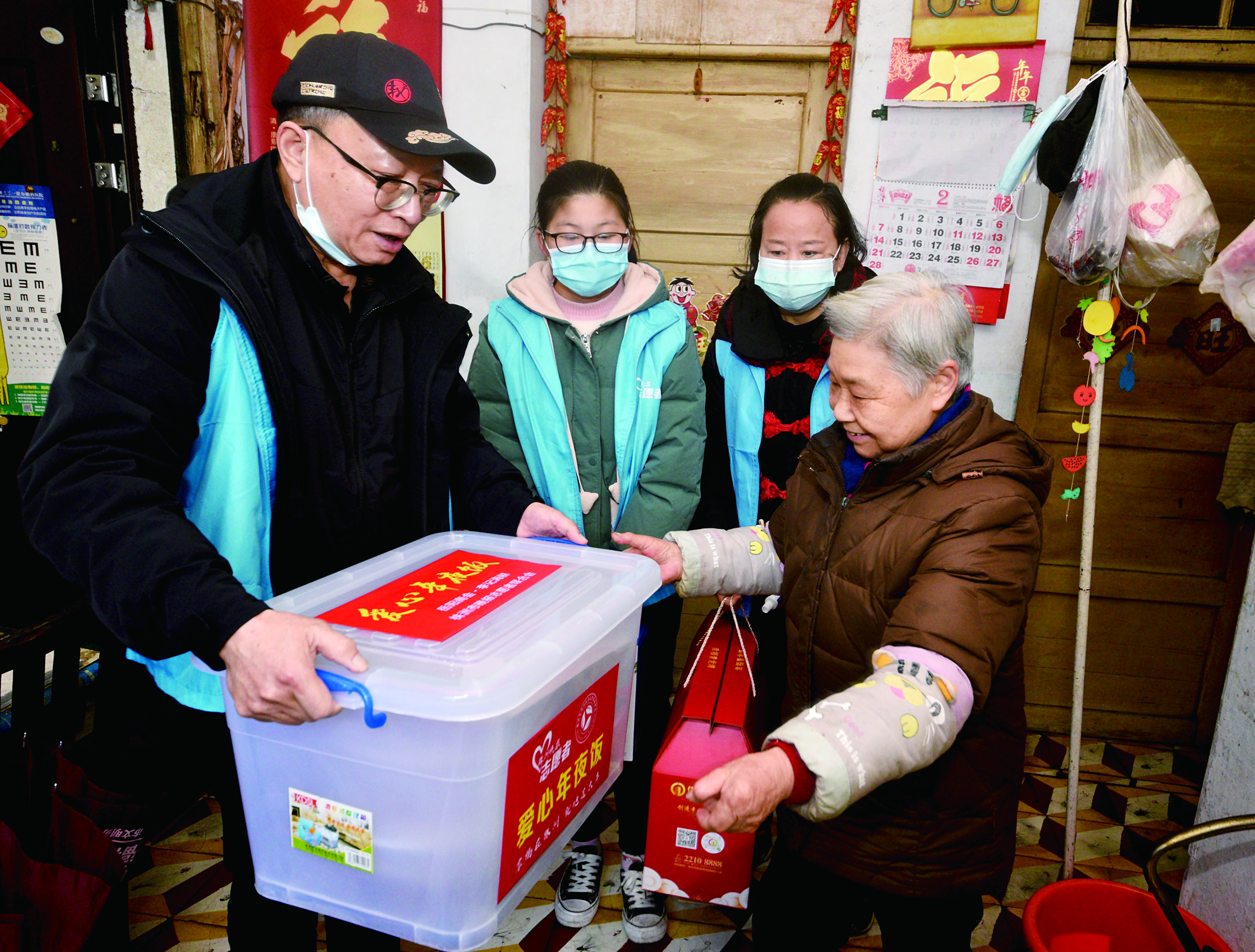 ▲志愿者为特殊家庭送去“爱心年夜饭+年货” 记者 刘震 摄