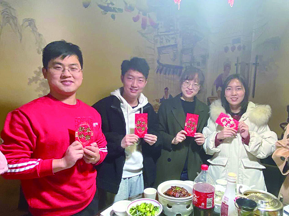 本报讯(记者 何春林 通讯员 曾雅 刘思思)2月4日中午,山西运城的彭婕、河南周口的王腾义、江西新余的叶静静、重庆开州的王清华,这4名在株就地过年的教师,在天元区菱溪中学工会组织下,一起过起了农历小年。菱溪中学还给他们每人发了一个红包,祝他们新年快乐。