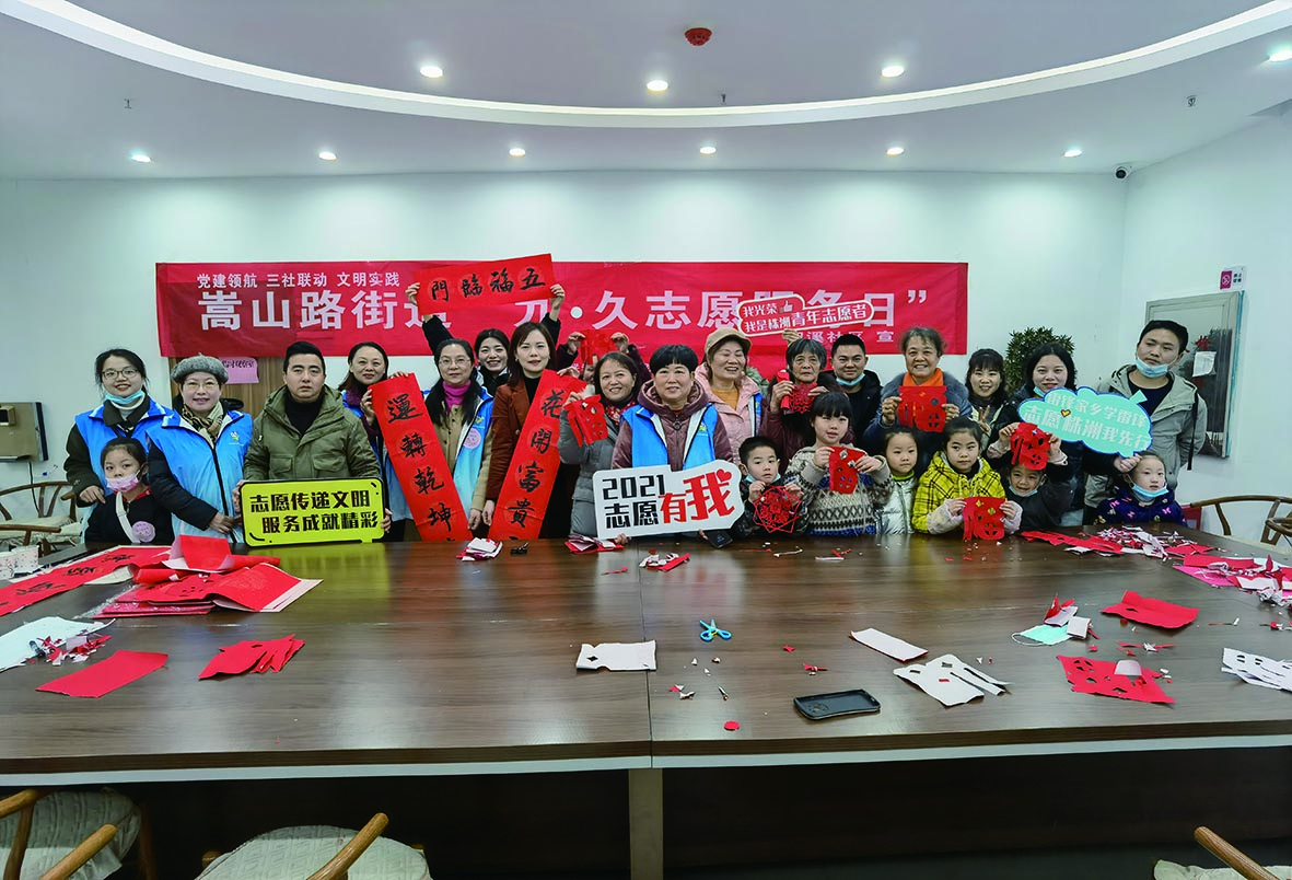除了邀请外地留株务工人员包饺子,感受“年味”之外,嵩山路街道携15个社区还送上了一系列精彩纷呈的志愿服务活动。