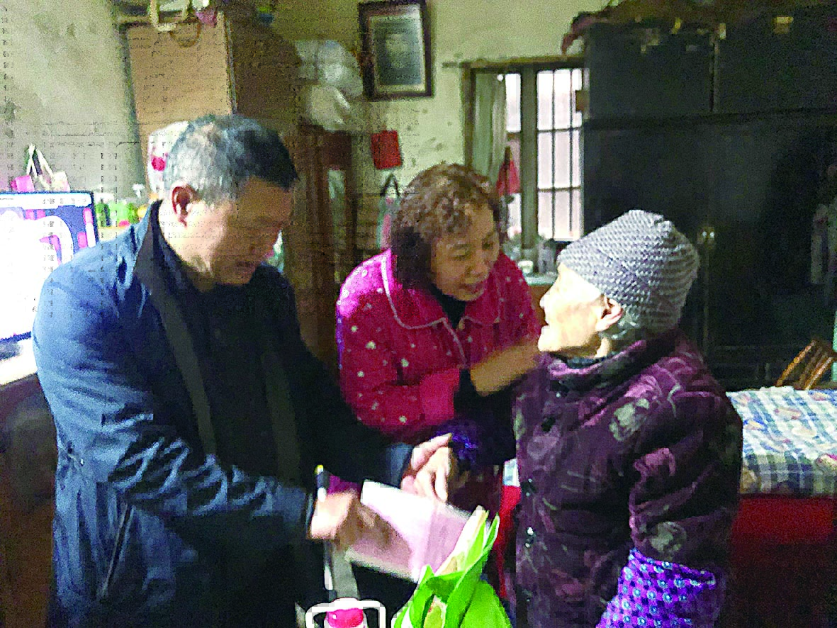 ▲市慈善总会工作人员汤爱军上门探望老人 记者 郑炜青 摄