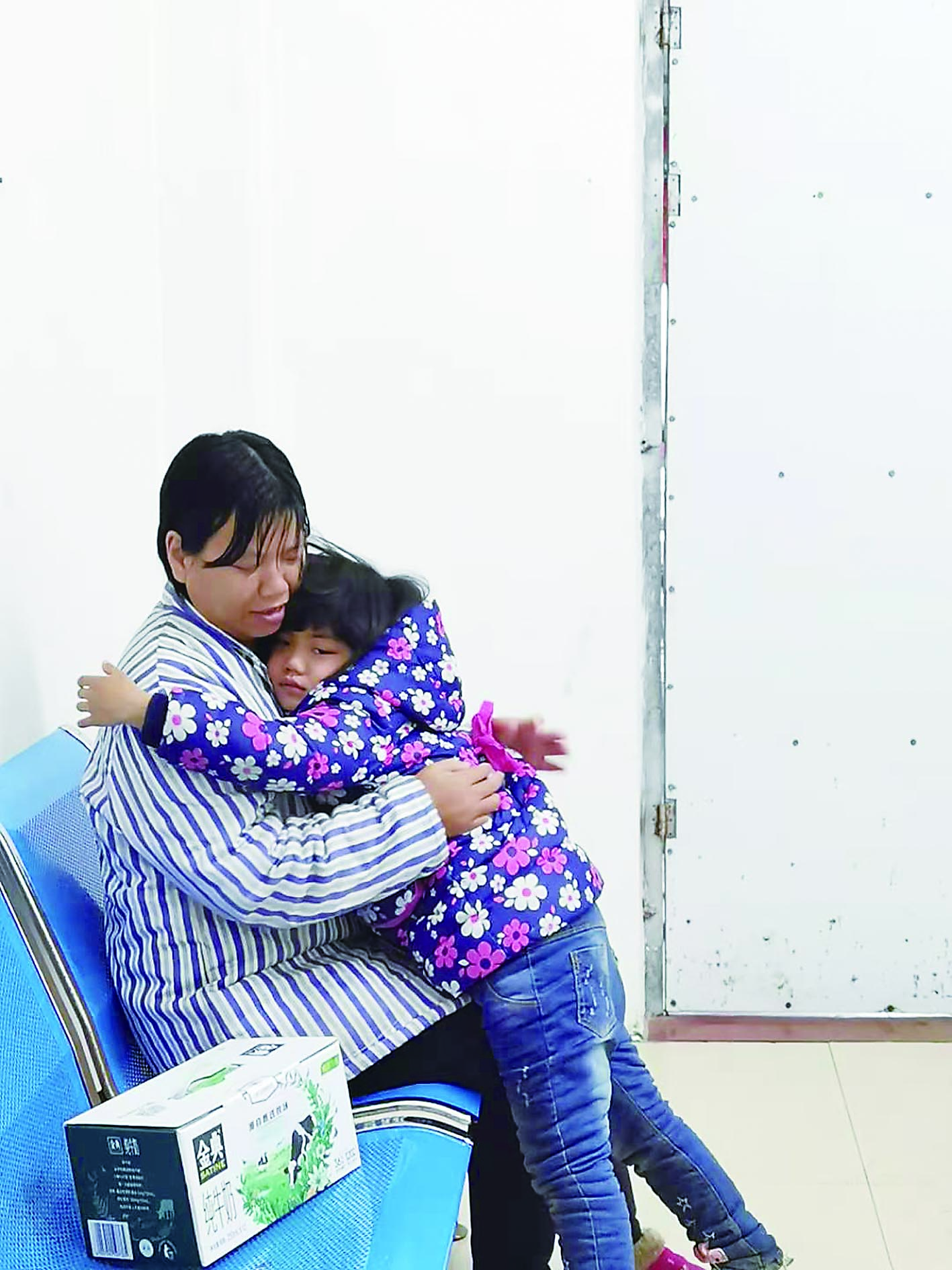 当天下午4点左右,志愿者驾车带着依依和外婆前往株洲神康医院探望患有精神疾病的妈妈,见到妈妈那一刻,依依控制不住自己的眼泪,扑进妈妈的怀抱。母女团聚的情形让在场所有人为之感动。