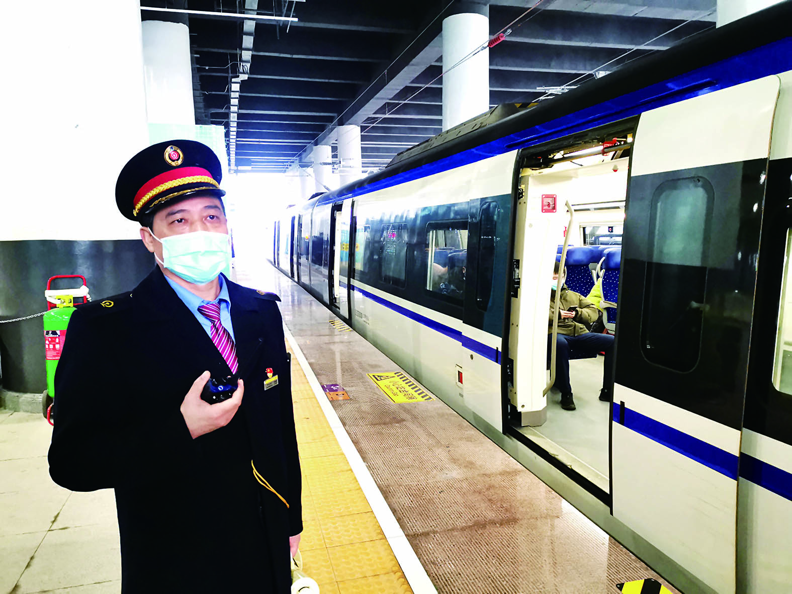 “S7938次列车即将进站,请带小孩的乘客,牵好孩子……”2月16日,正月初五,城际株洲站,在57岁客运员陈继东的带领下,乘客们有序进入候车站台。