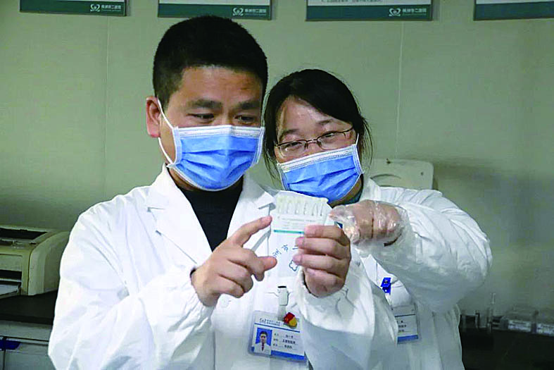 2月12日,肖礼梅在做完一个实验样品的检测后,做出了自己认为在办公室达到亲密“极限”的动作——帮丈夫整理了下白大褂。短暂“接触”后,二人分开再次投入到各自的工作中。