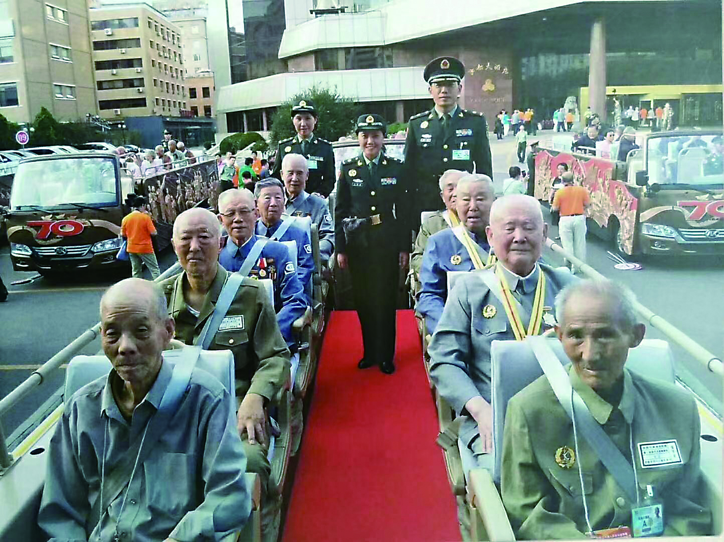 ▲张茂宜(前排右者)受邀参加抗战胜利70周年纪念大会 通讯员供图