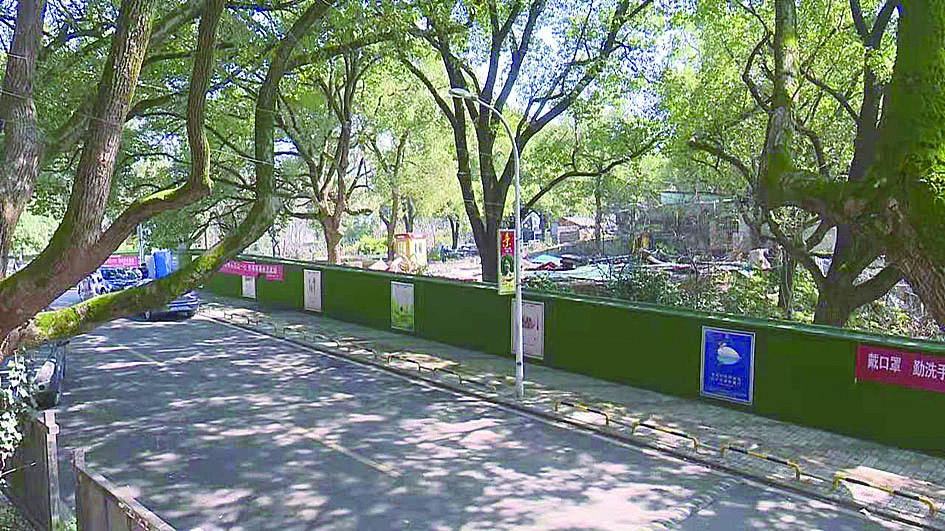 ▲昨天,神农公园游乐设施的场地被围挡遮住 记者 陈驰 摄