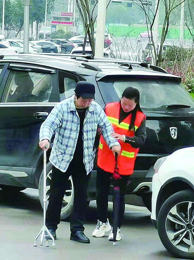 ▲王爱平搀扶老人过马路 通讯员供图