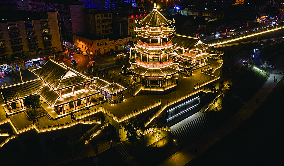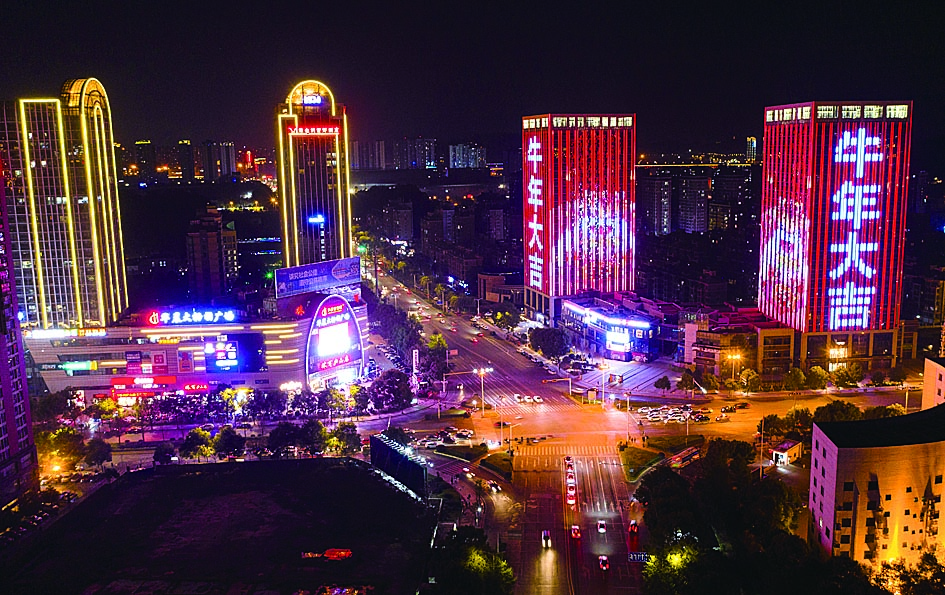▲长江路灯光闪耀的高楼