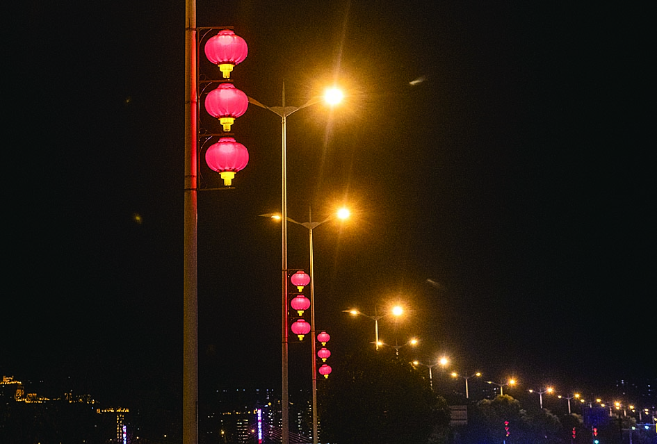 灯光秀从每晚6点开始,循环播放至晚上11点。从城市上空俯瞰这一片流光溢彩,最吸引眼球的还是那抹熟悉的中国红,映衬出“牛年大吉”“恭贺新春”等吉祥语,还有各种卡通形象的牛,在湘江风光带两岸闪烁。而在株洲大桥沿线,一盏盏红色灯笼造型的挂饰,与夜景相得益彰。