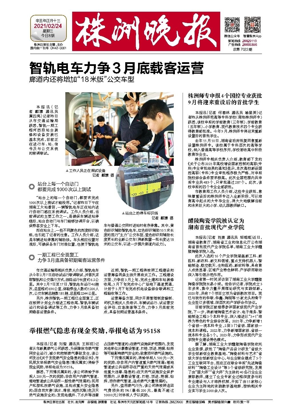 另外,株洲智轨一期工程已全面复工,正在按照计划全力推进工程收尾、智轨车辆试运行和设备调试等工作,力争3月底具备初期载客运营条件。