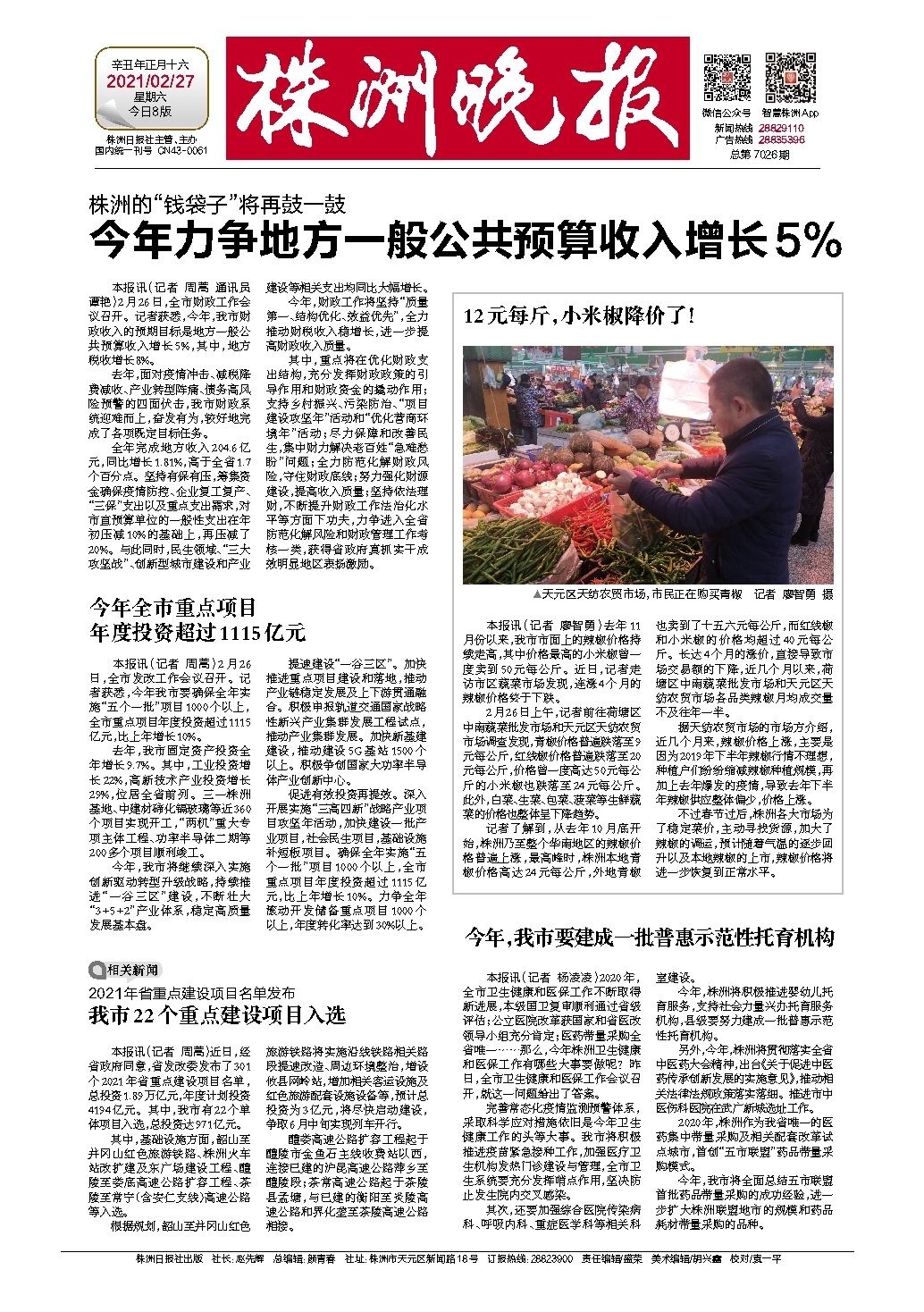 本报讯(记者 周蒿 通讯员 谭艳)2月26日,全市财政工作会议召开。记者获悉,今年,我市财政收入的预期目标是地方一般公共预算收入增长5%,其中,地方税收增长8%。