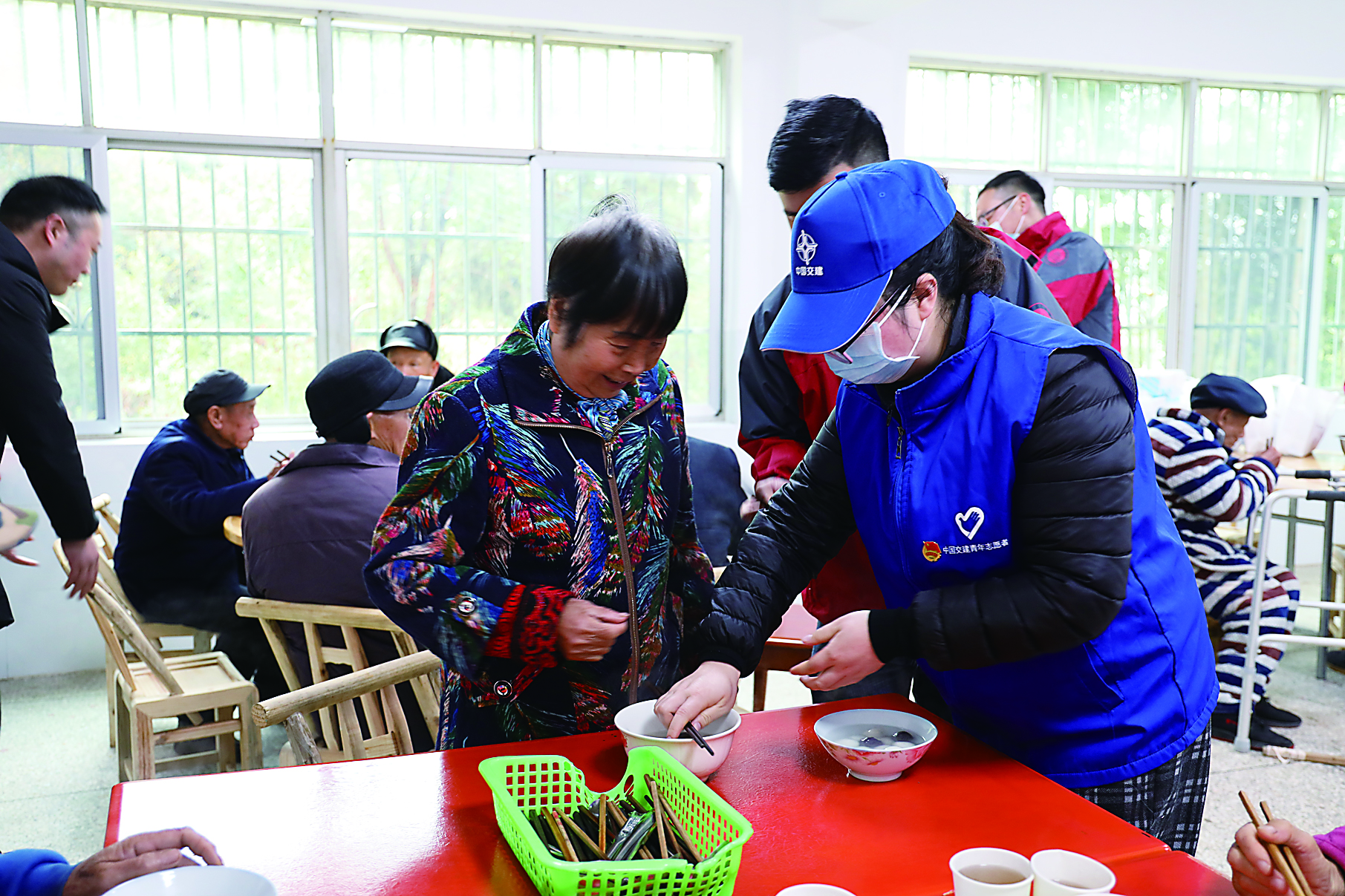 元宵到,真热闹。昨日上午,株洲晚报志愿者联合会中的中交三航局蓝马甲志愿服务队与岳阳商会志愿队赴天元区马家河敬老院、群丰敬老院开展爱心活动。志愿者们带来了自编自演的节目,其中,6岁小姑娘张欣然也跟随妈妈来到爱心活动现场,她唱着《你笑起来真好看》走到爷爷奶奶身边,老人们都笑得合不拢嘴。