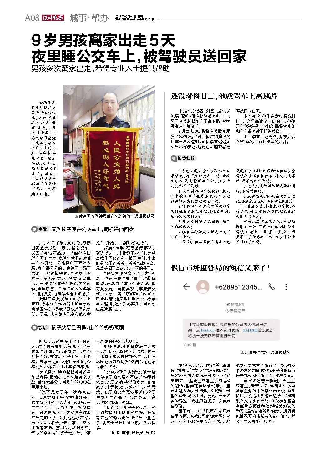 9岁男孩离家出走5天夜里睡公交车上,被驾驶员送回家
