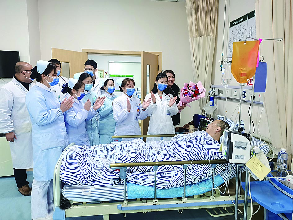 2月27日上午10点半,刘定坤与心内科医务人员带着鲜花和蛋糕来到文先生所在的病房,为他庆祝生日。