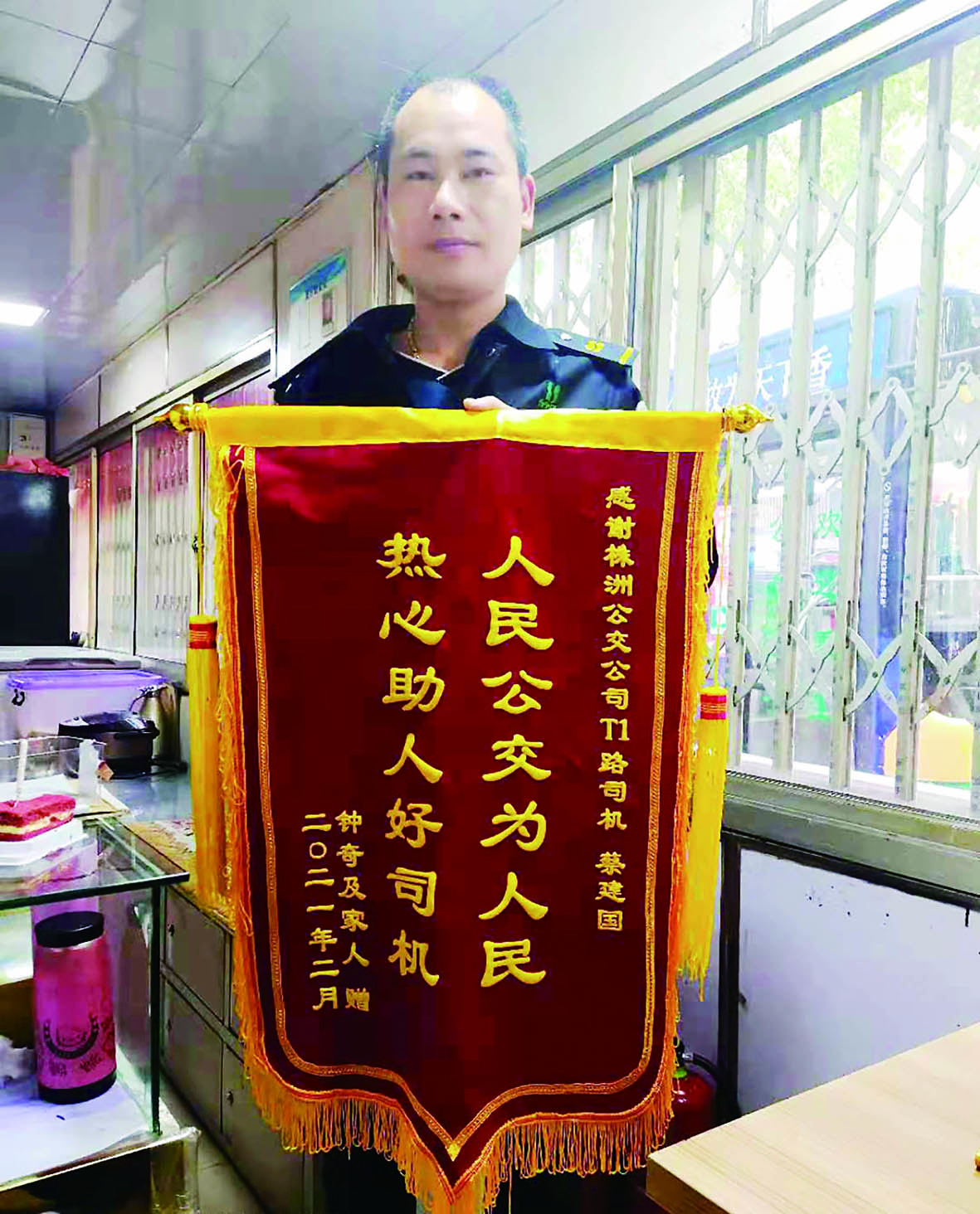 ▲蔡建国收到钟师傅送来的锦旗 通讯员供图