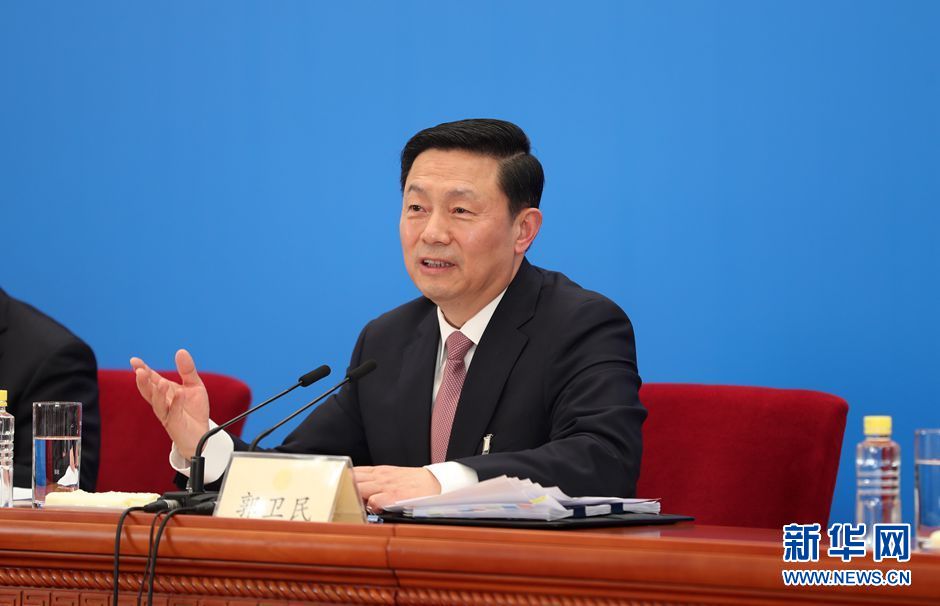 ▲图为大会新闻发言人郭卫民回答记者提问