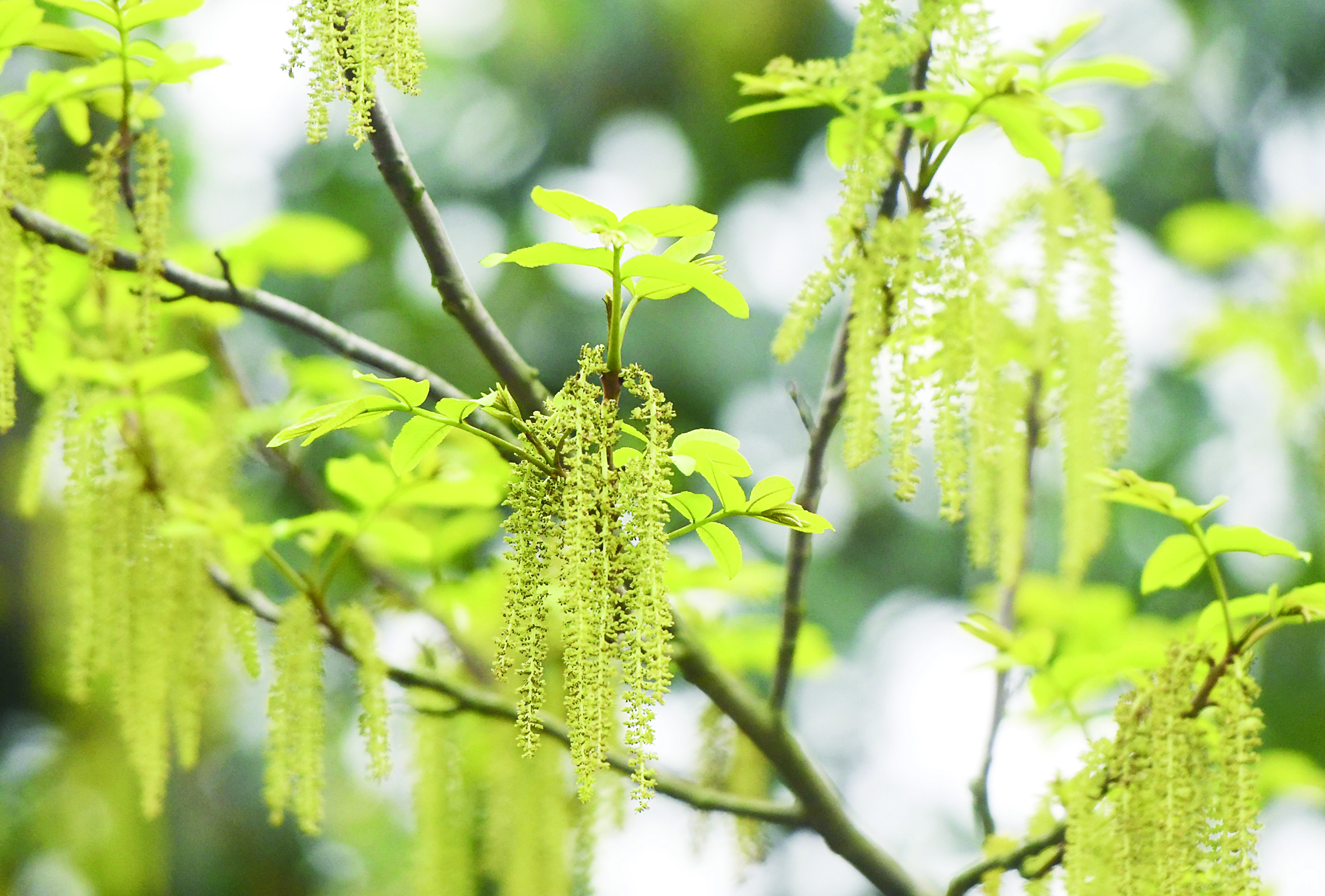 ▲3月17日,城区里的枫杨树上挂满了“胡须” 株洲晚报融媒体记者 谢慧 摄