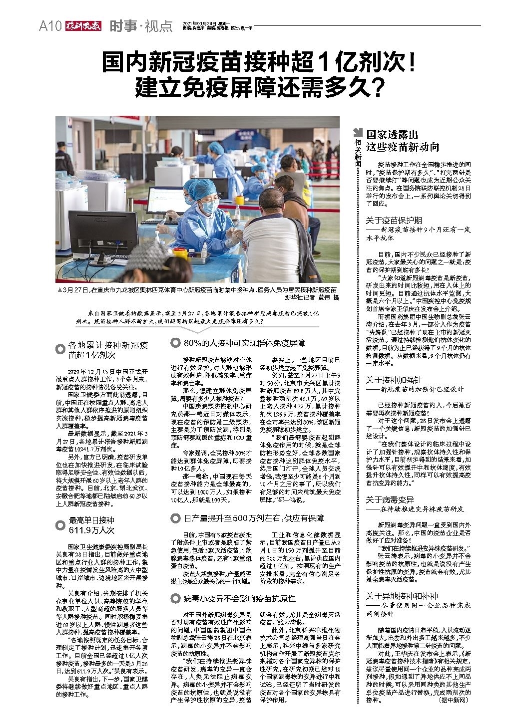 国内新冠疫苗接种超1亿剂次!建立免疫屏障还需多久?