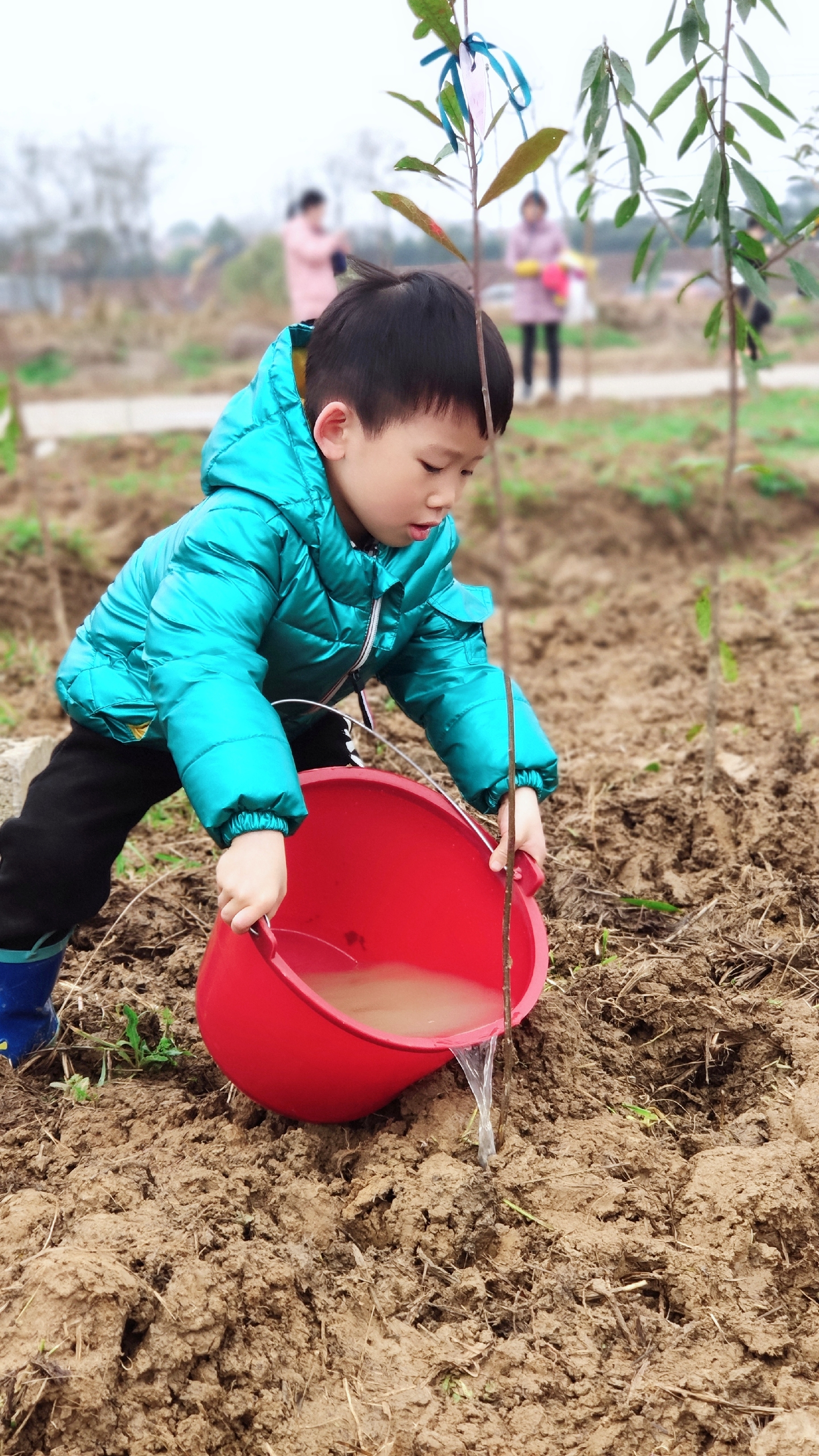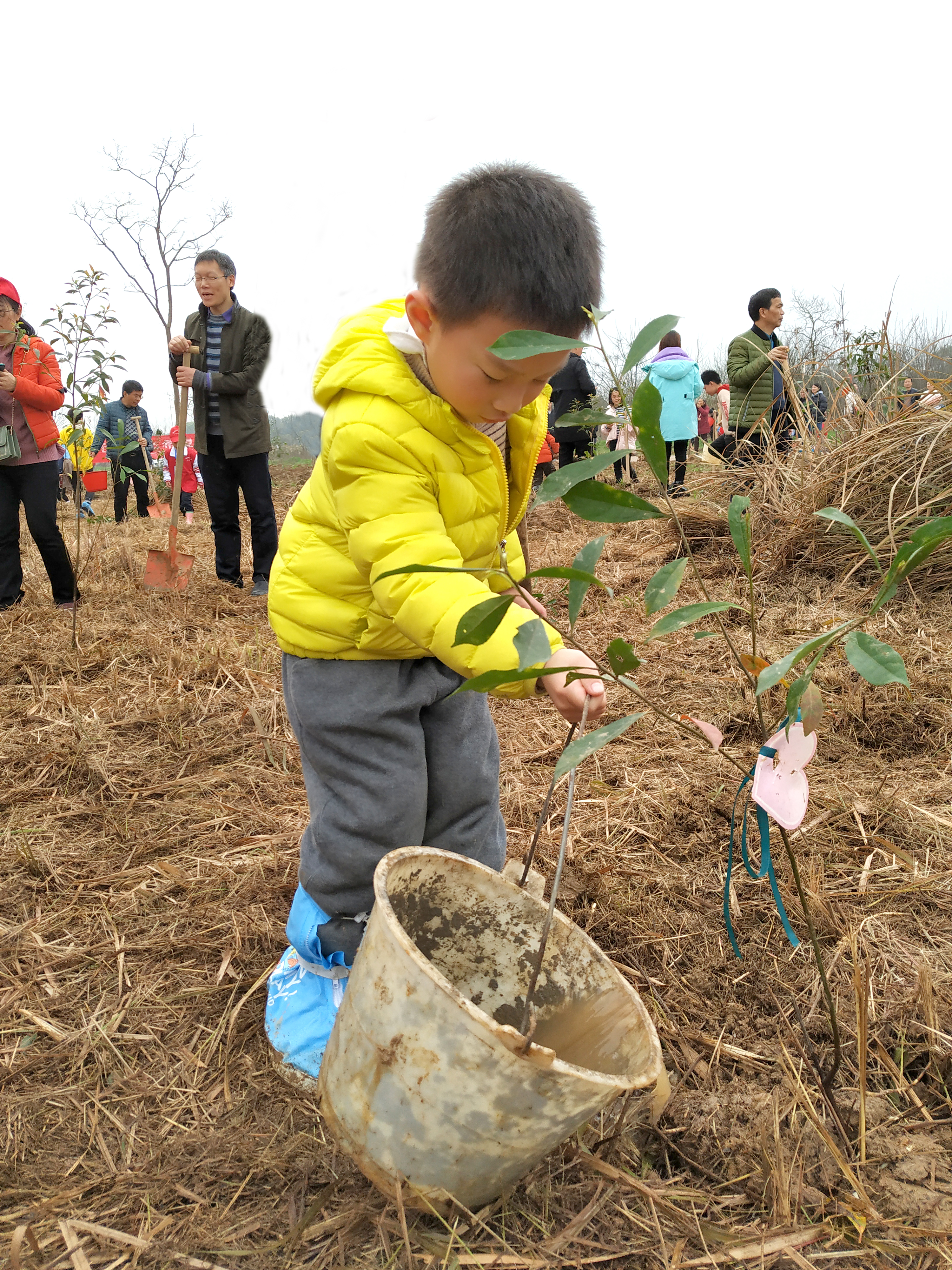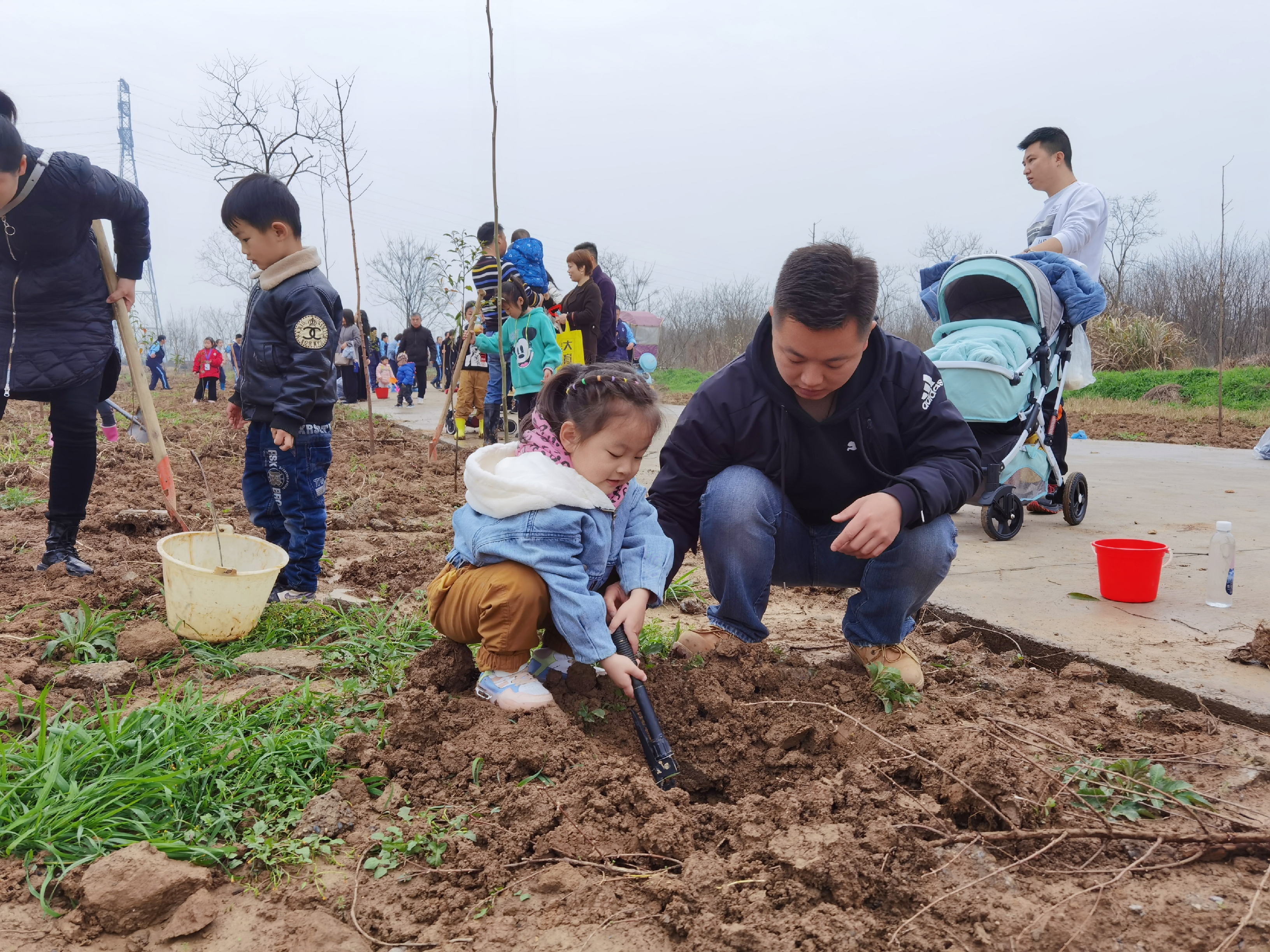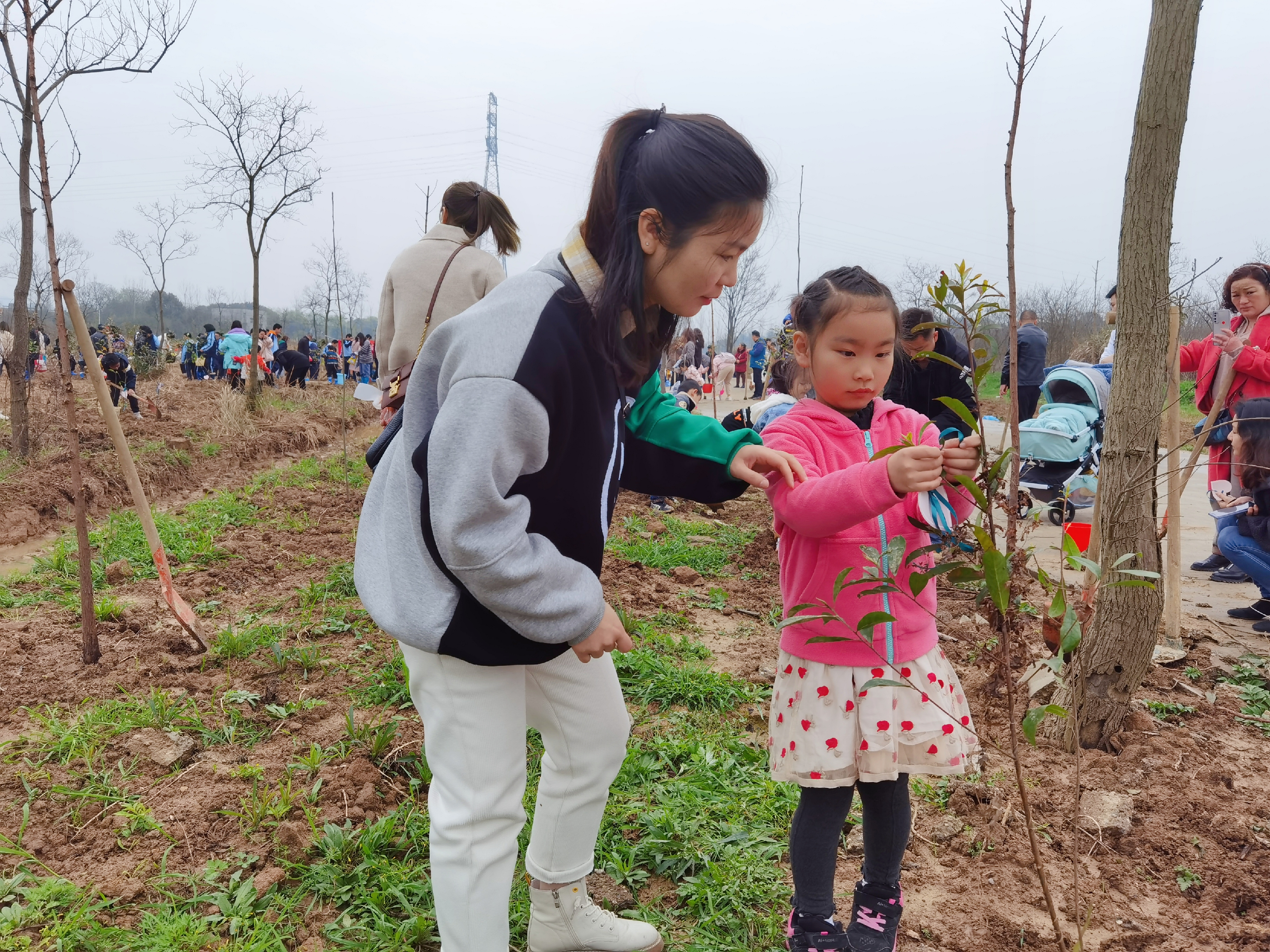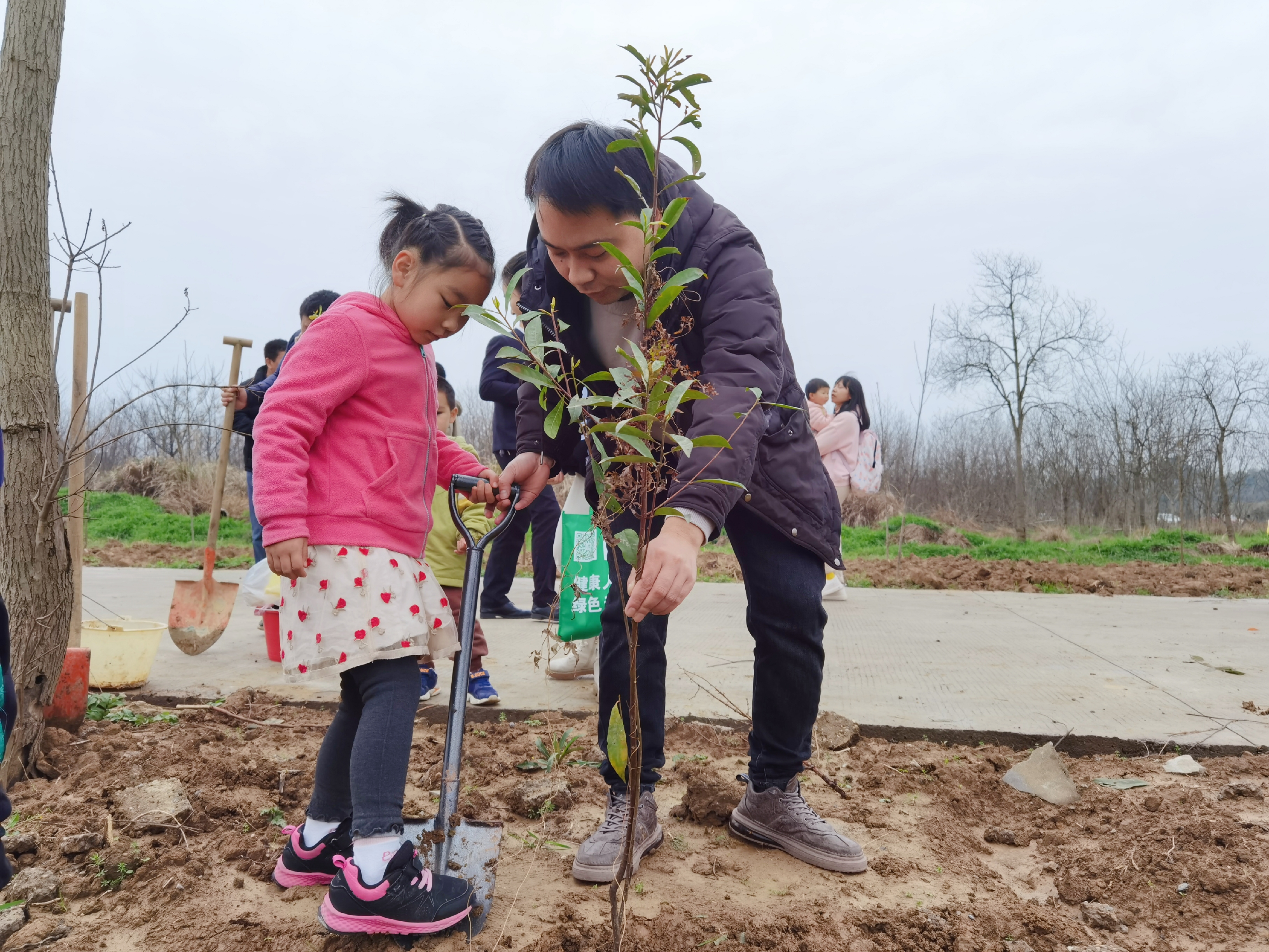 周末时光,家长和孩子一起挥锹挖坑植树,种下期待,也种下美好绿色回忆。从此,岁月里便多了一抹新绿;从此,孩子和小苗一起成长。