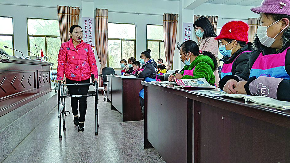 ▲在姚家坝村村部,培训老师正在讲解养老护理的知识 记者 杨凌凌 摄