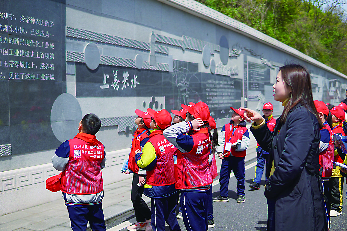▲小学生们正在学习记录株洲市城市供水发展史