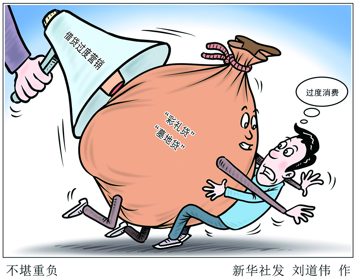 ▲漫画:不堪重负 新华社发 刘道伟 作