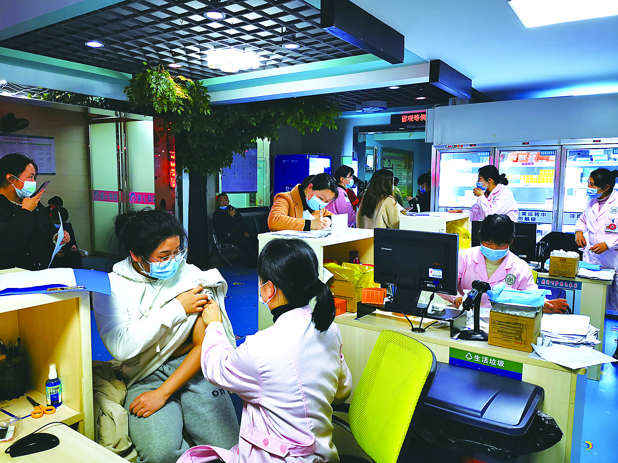 ▲市民在天元区泰山街道社区卫生服务中心接种新冠病毒疫苗 刘胜兰供图