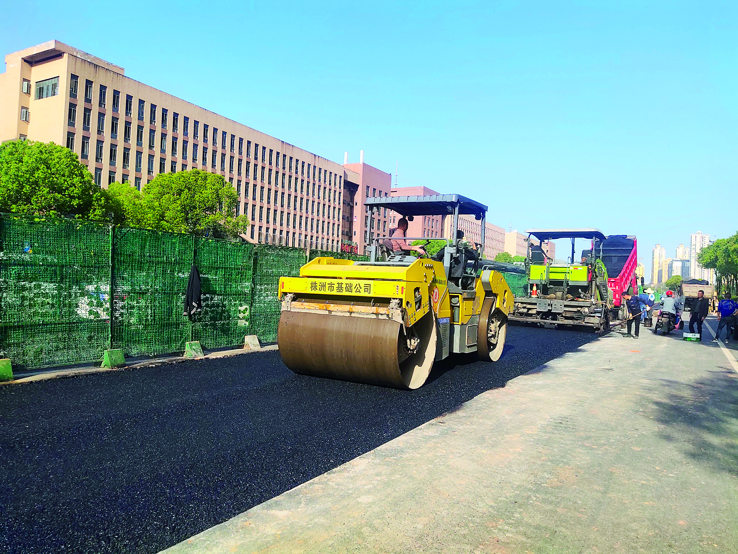▲智轨湖南工业大学站道路拓宽施工现场 记者 廖明 摄