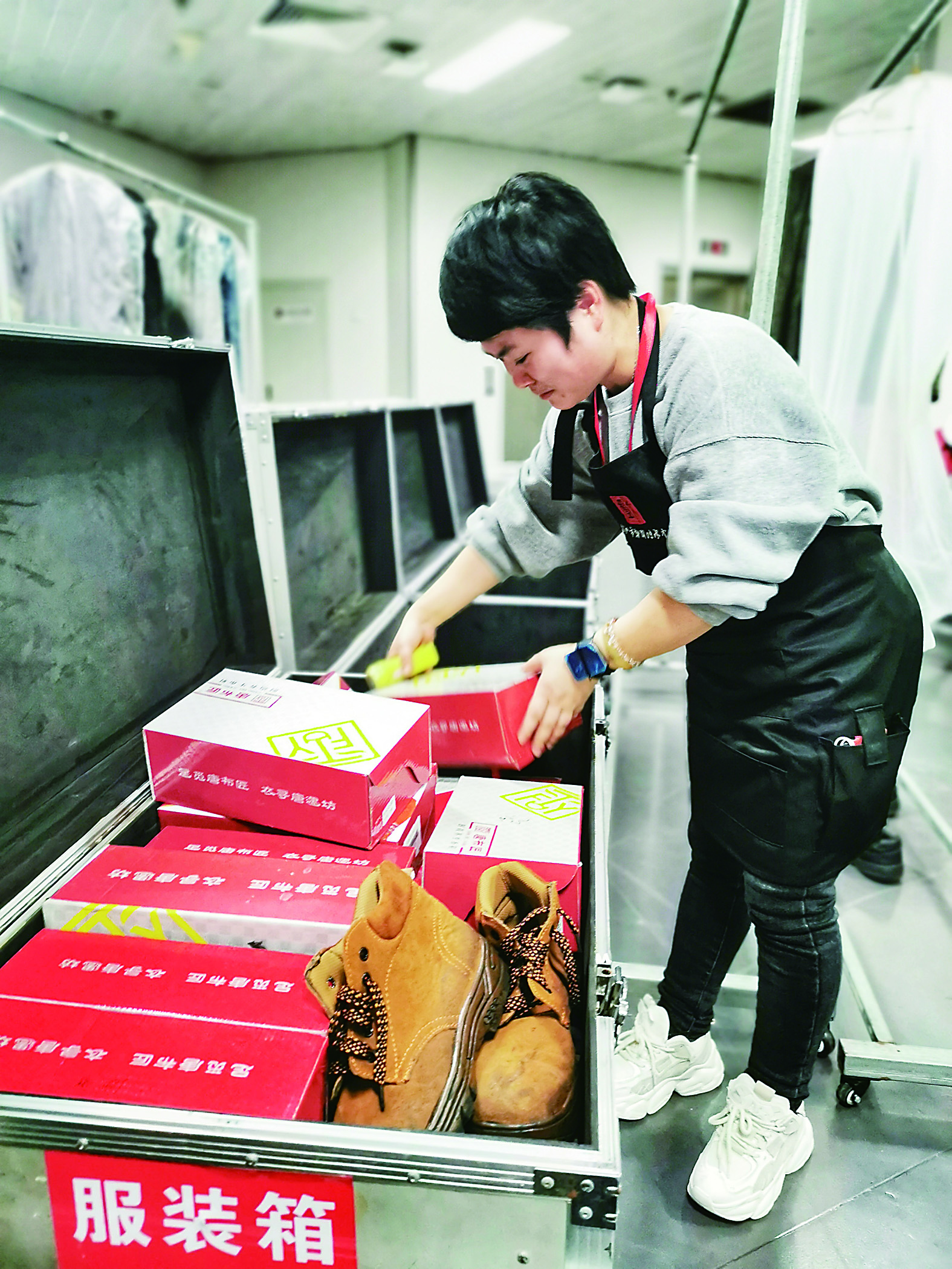 ▶工作人员正在紧张地整理演出服装 李茂春 摄