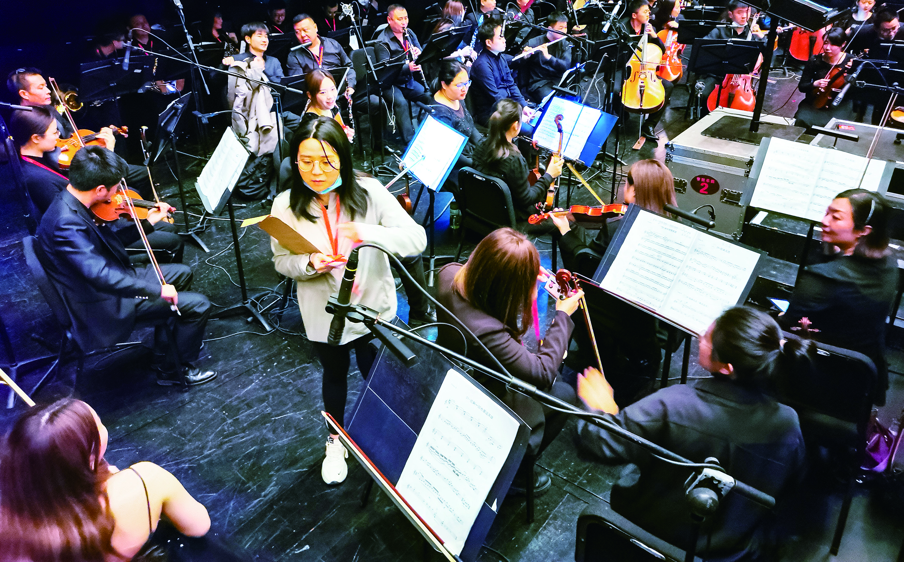 ▲《英·雄》开演前,乐手们正在试音 李茂春 摄
