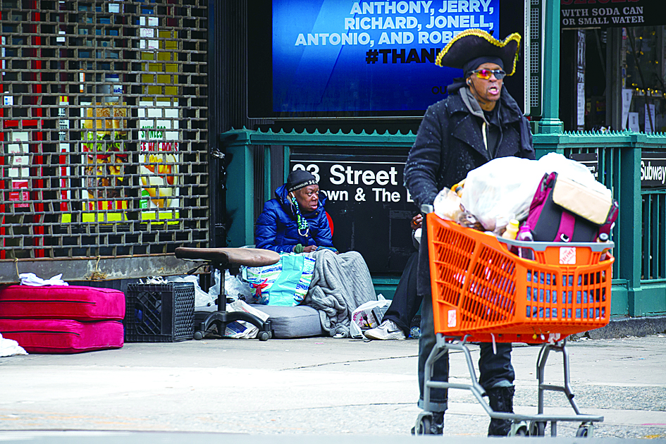 ▲2020年4月27日在美国纽约拍摄的地铁站旁的无家可归者 新华社发(郭克 摄)