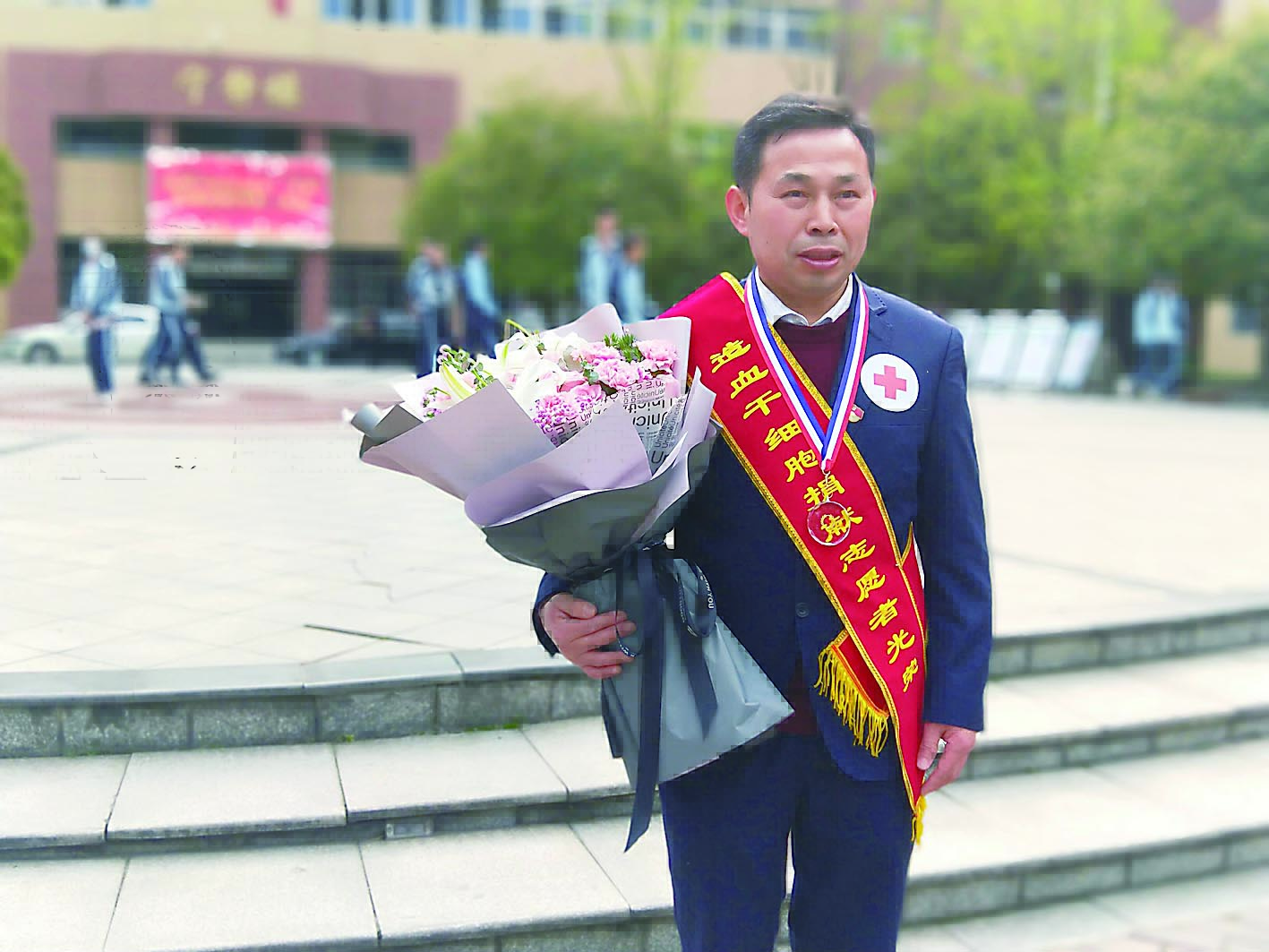 当天,市委宣传部、市红十字会等单位相关负责人来到现场,为胡晓虹送上鲜花,并为其戴上一枚金色的“红十字特别奉献奖”奖章。