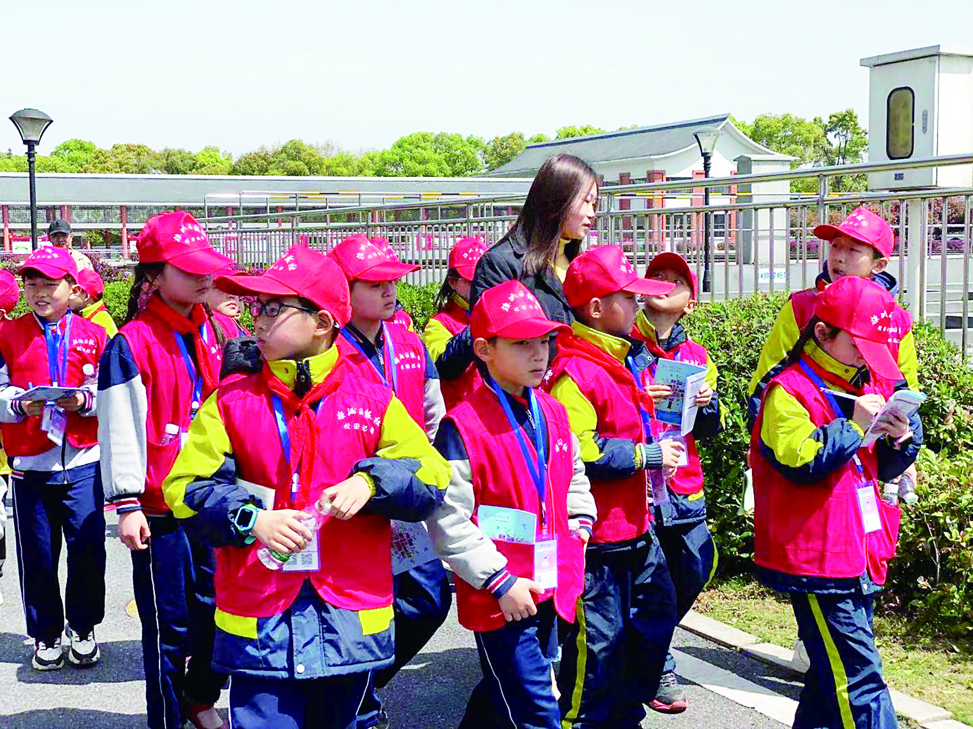 ▲先锋小学的校园记者在参观二水厂 魏朋 摄