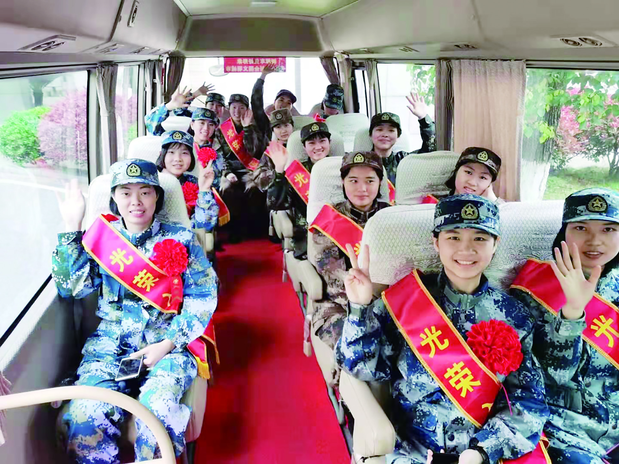 ▲3月27日上午,我市15名女兵奔赴军营。图为女兵乘车赴长沙集中交接启运 通讯员供图