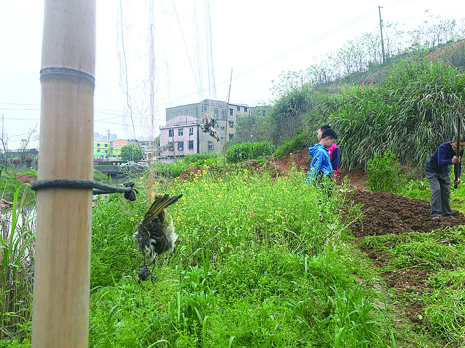 本报讯(株洲晚报融媒体记者 刘平)3月27日,位于天元区栗雨街道的金马机械化定点屠宰有限公司旁,一片菜地出现多张防鸟网,有一些鸟儿悬挂在网上,死亡时间已久。当地菜农表示,想护鸟,也想护菜,设网防鸟实属无奈。