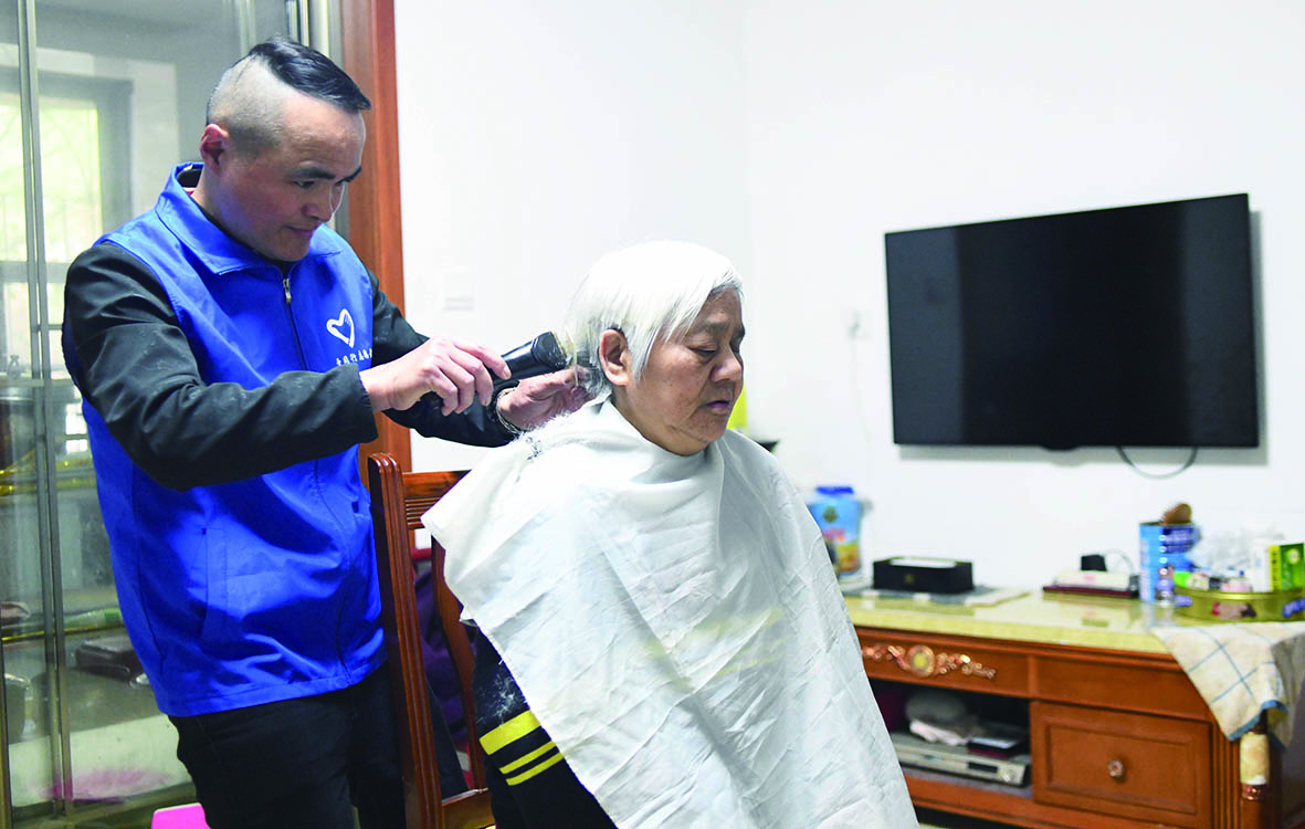 ▲3月29日,刘学敏来到社区独居老人张奶奶家为她理发