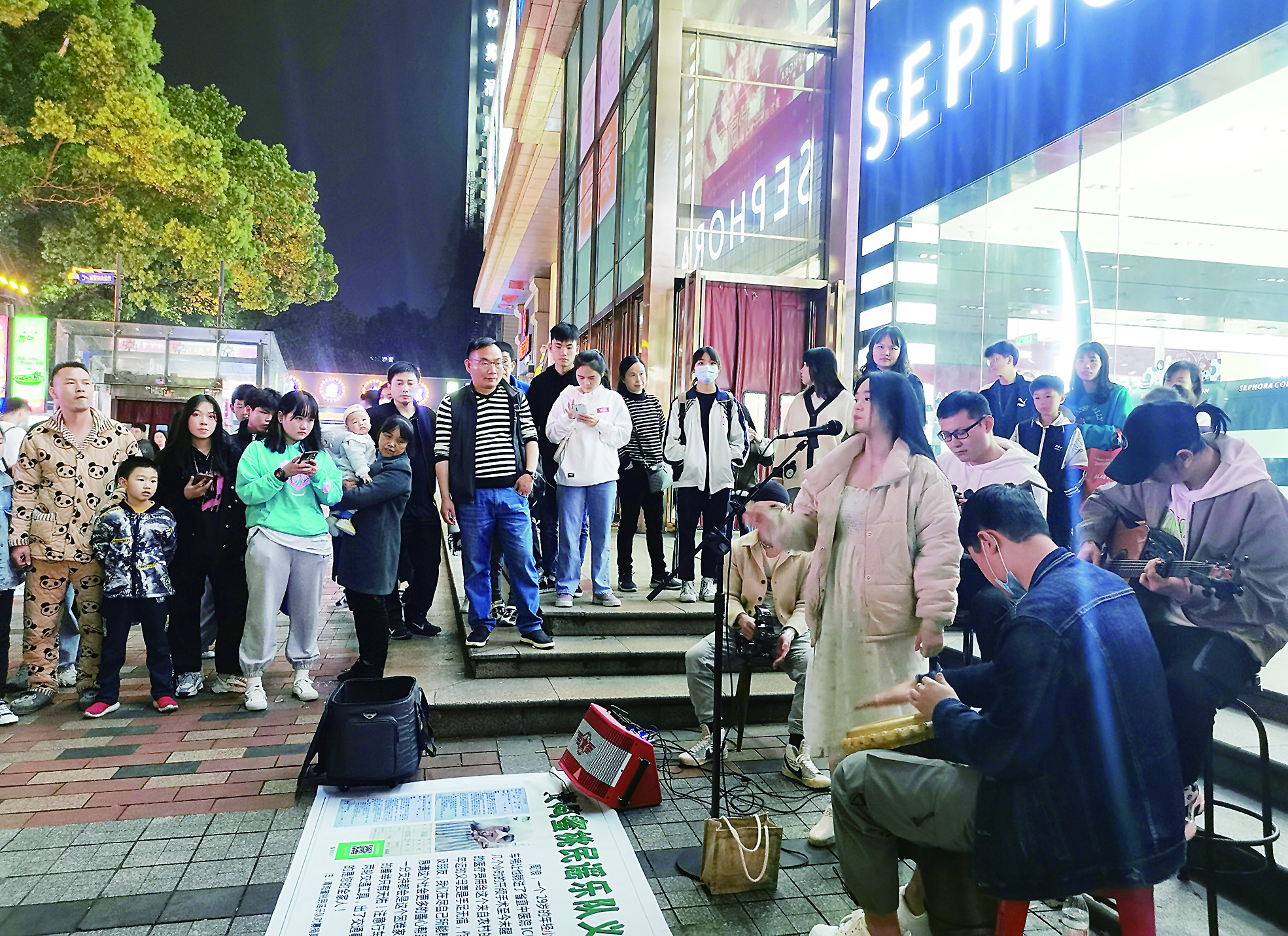 “愿天下处处皆是爱,为周浪加油,愿他坚强地挺过去!”昨晚,在中心广场王府井前坪,青陶蜜桃民谣乐队小伙伴们正在为好友发起一场特别的义演募捐活动。