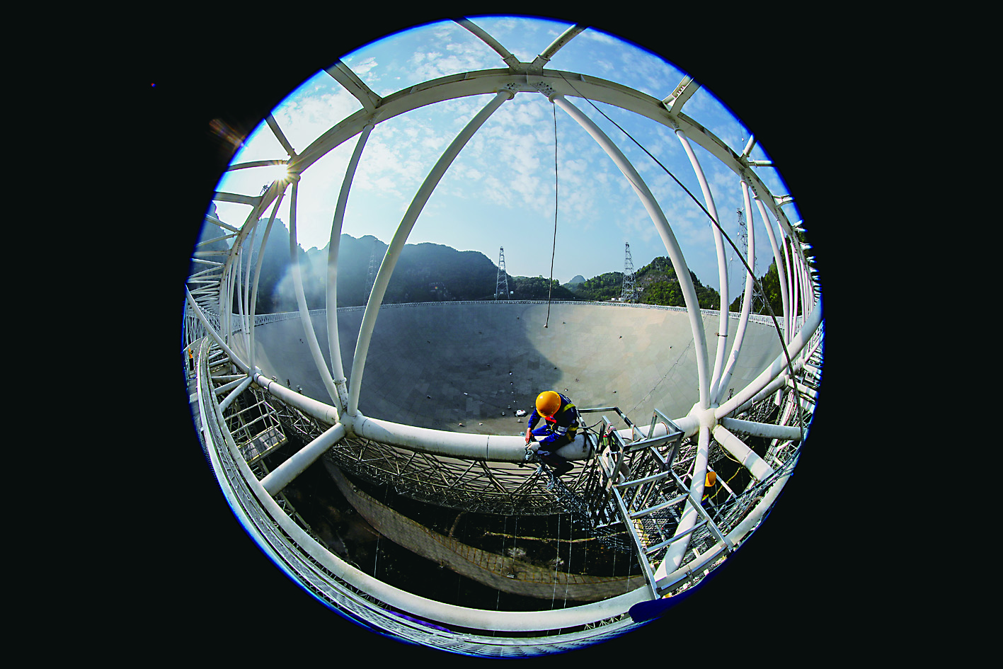 “中国天眼”是目前世界上最大、最灵敏的单口径射电望远镜,能够接收到100多亿光年以外的电磁信号。