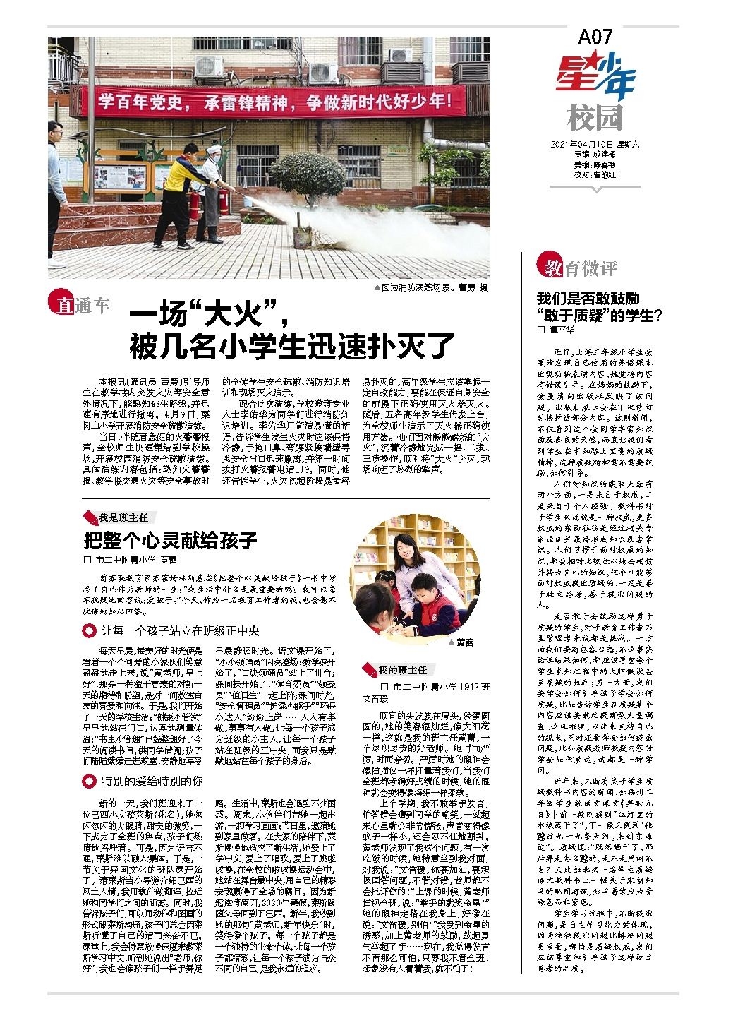 一场“大火”, 被几名小学生迅速扑灭了