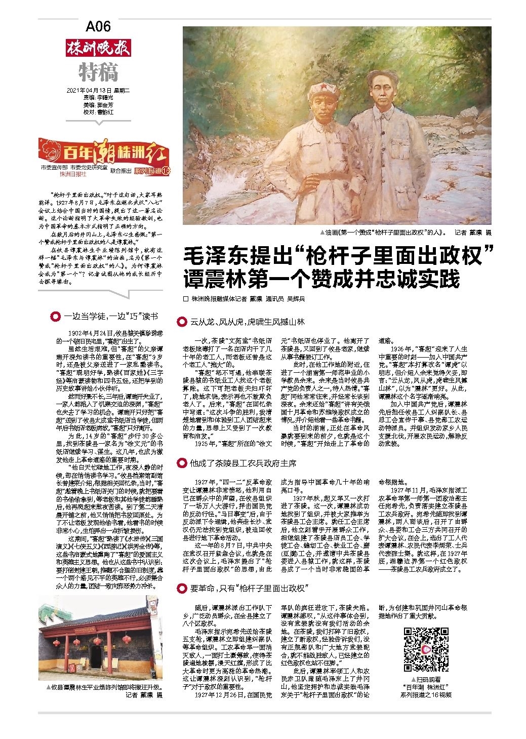 毛泽东提出“枪杆子里面出政权” 谭震林第一个赞成并忠诚实践